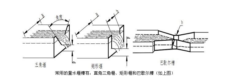 常用的量水(shui)堰槽有,直角三(sān)角堰、矩形堰和(he)巴歇爾槽(如⭕下(xià)圖)