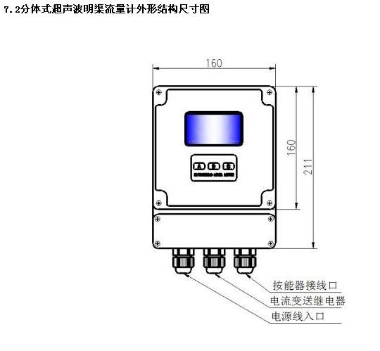 7.1一體式超(chāo)聲波明渠流量(liàng)計外形結構尺(chǐ)寸圖
